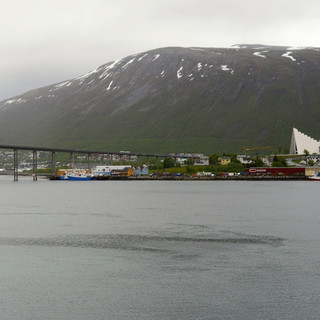 Nach dem Abendessen spazieren wir bei dunstigem Tageslicht noch durch Tromsø. Da am Folgetag ein Ausflug ab 08:45Uhr ansteht ruft ziemlich bald das Bett.