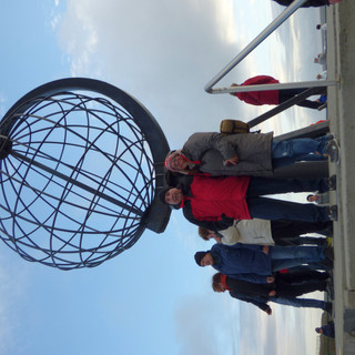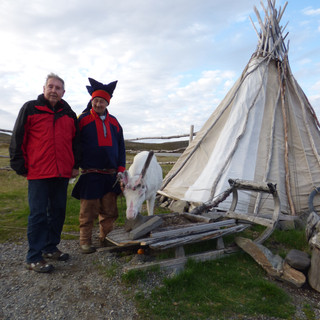 Den Anspruch zum Titel "nördlichesten Stadt Europas" bestreitet Honningsvag gegen Hammerfest. Mit seinen rund 3000 Einwohnern ist es Hauptort der Gemeinde Nordkap und liegt im Südosten der Insel Mageröy, etwa 6km vom Festland entfernt. Der Transfer zum Nordkap-Plateau dauert ca. 45 Minuten. Die Fahrt geht durch typische arktische, karge Landschaft.UNterwegs machen wir einen kurzen Stop bei einer Samenfamilie. Mehrere hunderte Rentiere weiden während der Sommermonate. Nachdem die Temperatur-Skala auf nette 5 Grad gefallen ist, startet Petra das Wintershopping - eine Haube muss her :-)