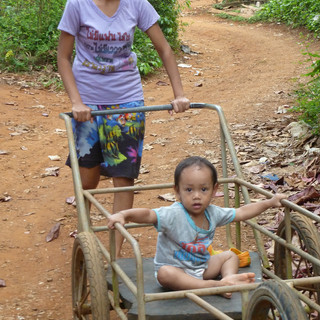 .... nachdem wir ja nix zu tun haben ... mieten wir ein "Moto" ... wir nehmen uns vor um 08:00 aufzustehen ...so kommen wir bereits früh auf die Straße - (Anmerkung der Redaktion: tatsächlich ist es 11:30 Uhr - zu unserer Verteidigung - wir haben den Wecker abgedreht weil wir das Geräusch einfach nicht mehr mögen) :-p Der heutige Tag hat uns viele Einblicke in diese Insel gegeben: Wir fahren zum ältesten Haus der Insel: Dort finden wir nicht nur das Haus, einen wunderschönen Strand, Kokos-Palmen samt -verkostung und ein süßes Rudel "Richbacks" ... sondern lernen auch eine Menge. Einerseits wie vielseitig diese Pflanze verwendet wird, aber auch dass die Insel Privat-Eigentum 5 heimischer Besitzer ist. Wir sprechen mit einer ur-ur-ur-ur ....-Enkelin des allerersten Insel- Käufers/Besitzers - der dieses Haus errichtet und somit den Grundstein zur Zivilisation gelegt hat. Noch immer ist die Familie in Besitz einiger Inseln, die durch innerfamiliäre Heirat ursprünglich Eigentum blieben, bis man damit angefangen hat auch ausserhalb zu heiraten. Weiter gehts über Dschungel-Pisten und teils betonierte Straßen um die Insel - die wir aufgrund ihrer nur 16 km2 Größe in einem Tag umrunden. Vorbei an einigen Stränden, schönen Resorts ... Am Pier des Kohmak-Resorts haben wir einige Sätze mit einer Österreicherin gewechselt, die seit 4 Jahren das Touristenbüro auf diesem Pier (wohl für das eine Ressort...) leitet. War ganz nett und hat uns einige Infos beschert. Koh Mak ist nicht mit dem Stromnetz am Festland verbunden, aber es gibt einen großen Generator, der die gesamte Insel seit Ende 2005 täglich 24 Stunden mit Elektrizität versorgt. Zusätzlich leisten einige mobile Generatoren ihre Arbeit, vermutlich wegen der Hochsaison. Als erste Insel Thailands verfügte Koh Mak über drahtloses Internet, allerdings wurde es Anfang 2006 wieder eingestellt. Mittlerweile gibt es aber an den Stränden und in den Dörfern Internet-Cafés oder Bungalow-Anlagen mit Internet-Zugang. Im Landesinneren gibt es auch eine zentrale Mülldeponie ... aufgrund des im Hintergrund der Häuser herumliegenden Mülls haben wir das heute hinterfragt - diese wurde durch den Bürgermeister voriges Jahr eingestellt - die Bevölkerung ist aufgefordert ihren eigenen Müll selbst zu verbrennen (wer verbrennt schon Müll hinter seinem Haus?) Nachdem wir an diesem Tag viel gesehen haben, gibts auch viele Foto´s hier für Euch! eines sei auch noch erwähnt: Derzeit gibt es mittags eine relativ starke Ebbe, was manchen Strand etwas komisch aussehen lässt, aber wenn man sie in ihrer Gesamtheit sieht, sind sie toll.