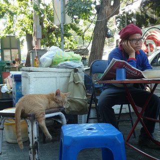 Unser heutiges Tagesziel: Finde jetzt Turnschuhe für "herum-hatsching" ....... Wir nehmen wieder das Hotelboot bis Saphan Thaksin - erwischen zu unserem Ärger an dieser Station keines der Express-Boote sondern werden in ein Touristen-Boot absorbiert ...*grmpf* Mit einer englischsprachige Thai, die ins Mikrofon brüllt um den Touris die Sehenswürdigkeiten näher zu bringen, die man allerdings nicht versteht, 8 fache Wiederholung dass dies nicht die Express-Linie von Bangkok ist und 3 Stationen für 40 Baht später steigen wir am Ratchawong Pier aus .... ab hier geht es Richtung Chinatown. Petra hat diesen Tag als Markt-Tag erklärt. So wandern wir Richtung SAMPENG Market (YAOWARAT) und tauchen in den Trubel der Straßenmärkte ein ... und nun zur Erklärung des Untertitels: Chinatown ist nicht unbedingt Petra`s Lieblings-District in Bangkok - Kakerlaken die über die Schuhe laufen (deswegen auch die Suche nach festen Turn-Herumhatscher-Schuhen) - Ratten, die so schnell sind dass sie nicht einmal die Katzen erwischen ... Gestank ohne Ende (im Gegensatz zu den Thais, habens die Chinesen nicht so mit der Sauberkeit) ... aber: alles vergeben und vergessen ..... bereits beim 2. Geschäft fällt Petra ein, dass ihre Geldbörse mittlerweile auch in die Jahre gekommen ist - wir kaufen sicherheitshalber gleich 2 (als Sicherheits-Ersatz sozusagen). Die Augen glänzen je mehr wir uns im Markt verlieren (dann sind Ohrringe dran, die wir unbedingt brauchen, weils die bei uns nicht gibt), die Zeit vergeht und viele Eindrücke und ein paar kleine Einkäufe später verlassen wir Chinatown - um den PIG Shrine zu suchen (für alle die´s genau wissen wollen : http://www.thaizer.com/thailand-photos/pig-shrine-sahachat-memorial-bangkok/) Ab jetzt beginnt massives hatsching (am Rande ... noch ohne neue Turnschuhe).... vorbei am Wat Po suchen wir das Denkmal - sehen uns den Wat Rachapradit an, der derzeit für Restaurierungszwecke der Perlmutt-Verzierungen in den Fenstern fotografiert wird, und finden das Denkmal .. das vollbehangen mit Blumenkränzen ist, und für Fotozwecke nicht als Schwein erkennbar ist ...*grml* Dort kommen wir mit einem Thai ins Gespräch, der den Wat restauriert und uns erzählt dass an diesem Tag der letzte von den Chinese New Year ist, wo alle Reise-Kosten sowohl für Locals wie auch Touris günstiger sind. Er empfiehlt uns mit einem TukTuk ins Thai Thourist Center zu fahren ... für 20 Baht machen wir da mit - obwohl wir uns nicht sicher sind, ob wir nicht bei einem Schneider landen. Tatsächlich kommen wir in einem Tourismus-Büro an - da wir allerdings nur das Zugticket nach Hua Hin benötigen - gibts für uns natürlich nix. Egal .. wir heuern wieder einen Tuk Tuk-Fahrer an - um beim Wat Arun den Sonnenuntergang zu fotografieren. Am gegenüberliegenden Flussufer machen wir´s uns in einer Bar gemütlich und genießen das Sonnenuntergangs-Spektakel. Die Turnschuhe sind wieder im Gespräch .... so machen wir uns auch den uns bereits bekannten SAPHAN PU Night Market zu besuchen, nach 1,1km Fußmarsch am eindrucksvollen Blumen- und Gemüsemarkt vorbei stellen wir fest, dass dieser entweder verlegt oder geschlossen wurde ...... Somit fahren wir mit dem Taxi zum neu eröffneten ASIATIQUE Markt. Schön gemacht - aber nicht unser bzw. Thai-Stil (erinnert an Parndorf) ..... wir finden Schuhe - FLIP FLOPS mit Stöckel für Petra (wieder sind wir happy *ggg*) - rasten noch kurz in einer Bar genehmigen uns eine 1stündige Fußmassage und ein Abendessen und machen uns dann gegen 23.00 auf Richtung Hotel.
