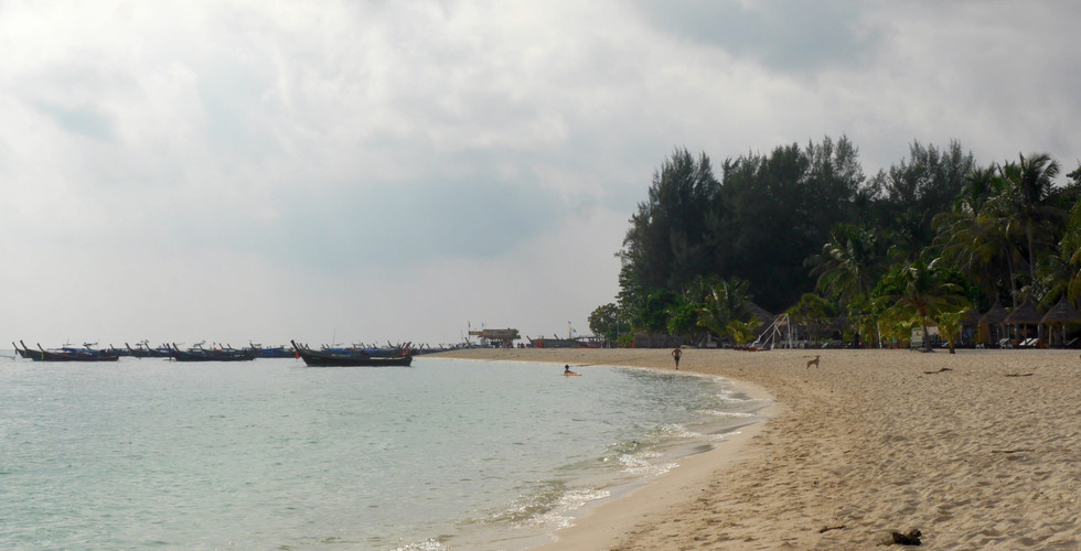 Flach abfallend ins Meer eignet sich dieser Strand besonders für Kinder zum Planschen und Spielen. Allerdings liegen Dutzende Longtailboote am Strand, schließlich kommen hier die Fähren an und starten die Ausflugsboote. Deshalb knattert es tagsüber laut, und es herrscht ein ständiges Kommen und Gehen. Am westlichen Ende (zB. beim Sita Beach Resort) wird es etwas ruhiger,